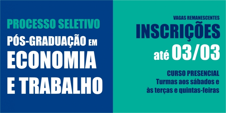 A Escola DIEESE de Ciências do Trabalho, em São Paulo, está abrindo inscrições para o processo seletivo para as vagas remanescentes do curso de pós-graduação Lato Sensu em Economia e Trabalho.