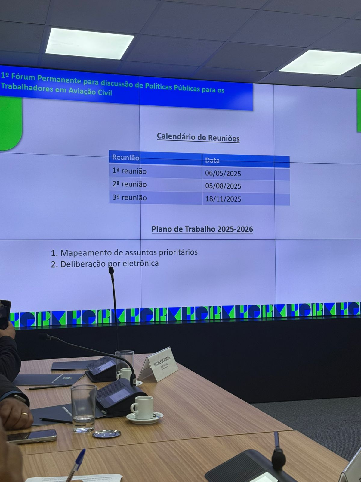 Outro ponto importante, sobre a questão do passageiro indisciplinado, que haviam retirado da pauta. Foi cobrado, durante a reunião, e os representantes do MPor disseram que já existe um outro Fórum, o Conaero (Comissão Nacional de Autoridades Aeroportuárias), e a Federação foi direcionada para participar desse outro fórum para discutir a questão desse tema de passageiro indisciplinado.