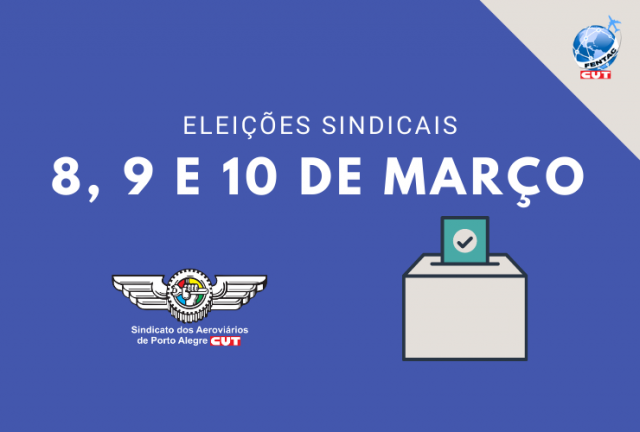 Nos dias 8, 9 e 10 de março, o Sindicato dos Aeroviários de Porto Alegre, um dos sindicatos filiados à FENTAC, terá sua eleição para a gestão dos próximos três anos.