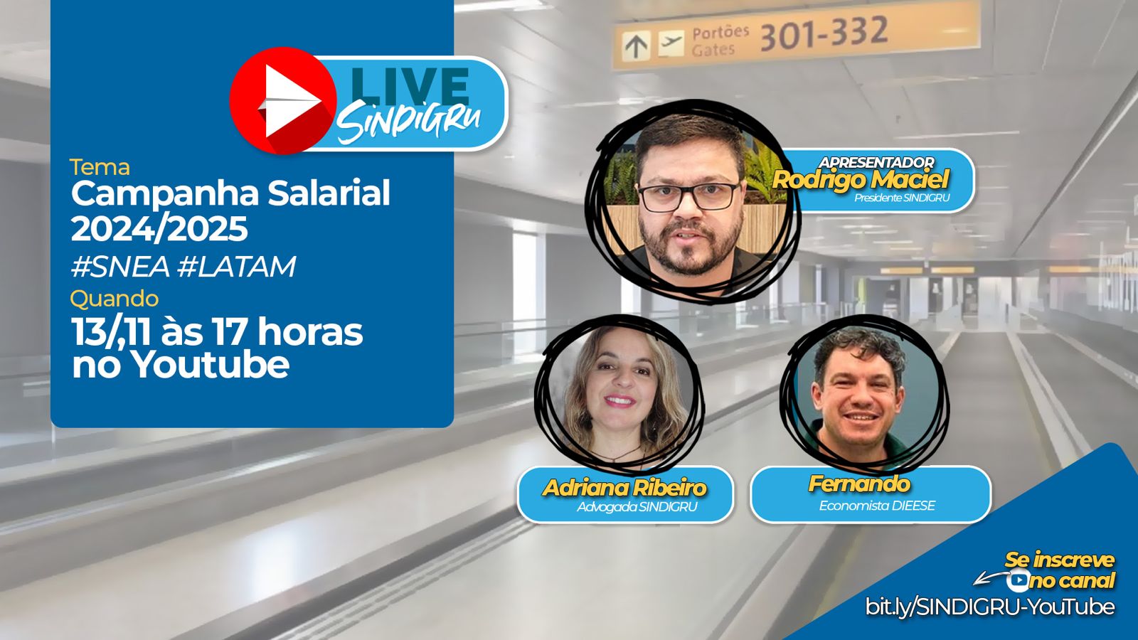 O Sindicato dos Aeroviários de Guarulhos realiza uma live nesta quarta-feira, dia 13, à partir das 17h, com apresentação do presidente Rodrigo Maciel e comentários da advogada Adriana Ribeiro, do departamento jurídico e o economista Fernando Lima, do Dieese.